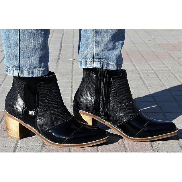 Botín Cierre Negro Charol
