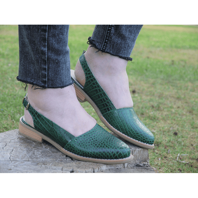 Zapato Abierto con Correa, Modelo China. Hecho a mano con cuero 100 % natural. El interior es forrado con Badana, favoreciendo la transpiración y la absorción del sudor en el pie.